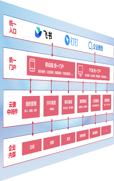 对协作平台提供支持服务,,,支持企业应用与协作平台对接,,包含组织同步、、、、消息集成、、、待办集成等。。。支持目前主流的协作平台:钉钉、、、企微和飞书。。。
